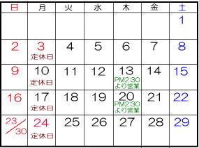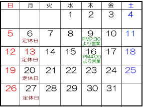 土、日、祝日AM9:00~PM7:00(〃PM6:00まで)
